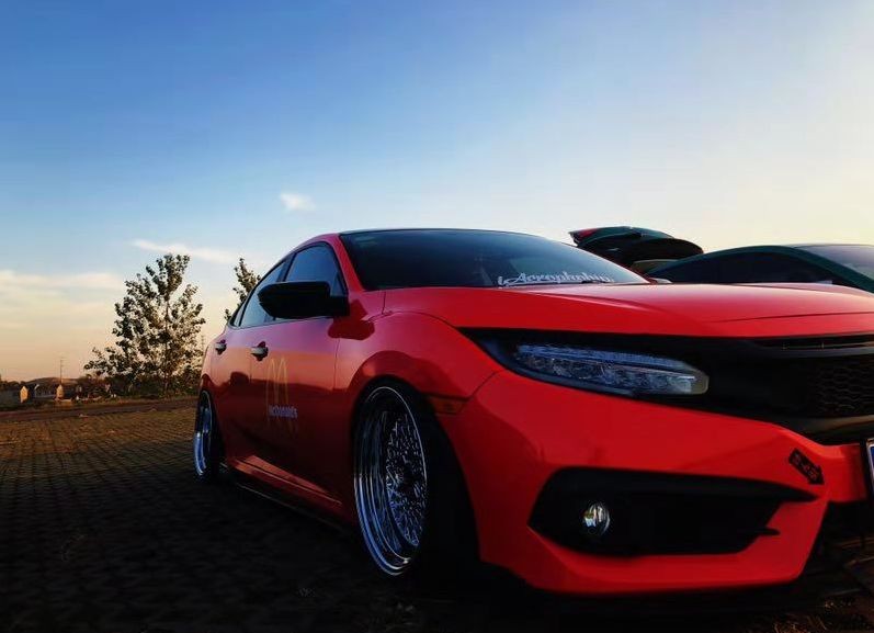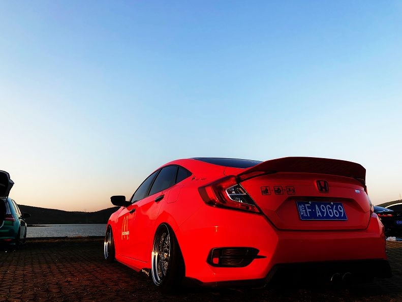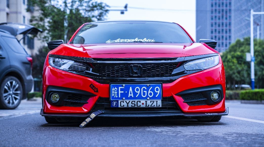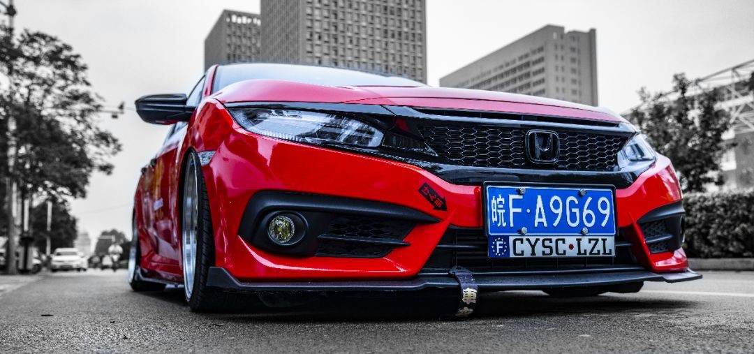 骚红低趴本田十代思域改装鉴赏