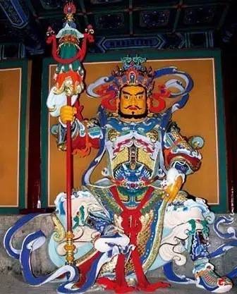 这是四大天王中,北方多闻天王(毗沙门天)的形象。在汉传佛教的寺院里,多闻天王头戴毗卢宝冠,一手持伞,以表福德之意(当然,在其他环境下,不一定持伞)。