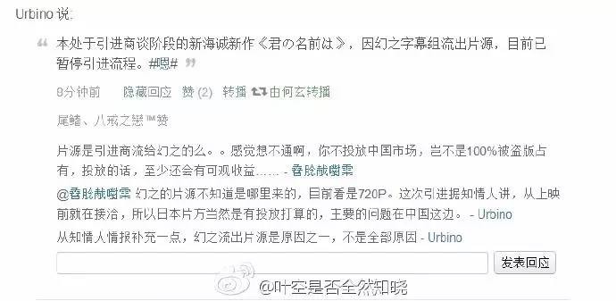 然而,就在这两天,“幻之字幕组”发布了《你的名字》盗版片源(480p)。