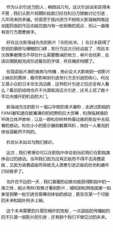 于是有国内发行商着手引进。我们终于有希望在国内的电影院看到新海诚的电影!