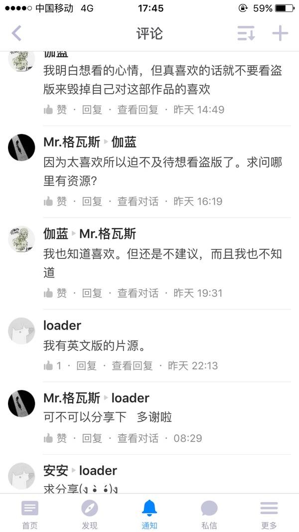 也许是因为发行商对我们动画片观众没有信心吧,认为我们是看看盗版就会满足的人呢。毕竟在dalao的知乎回答下面,就有人在求资源,有人在发资源。