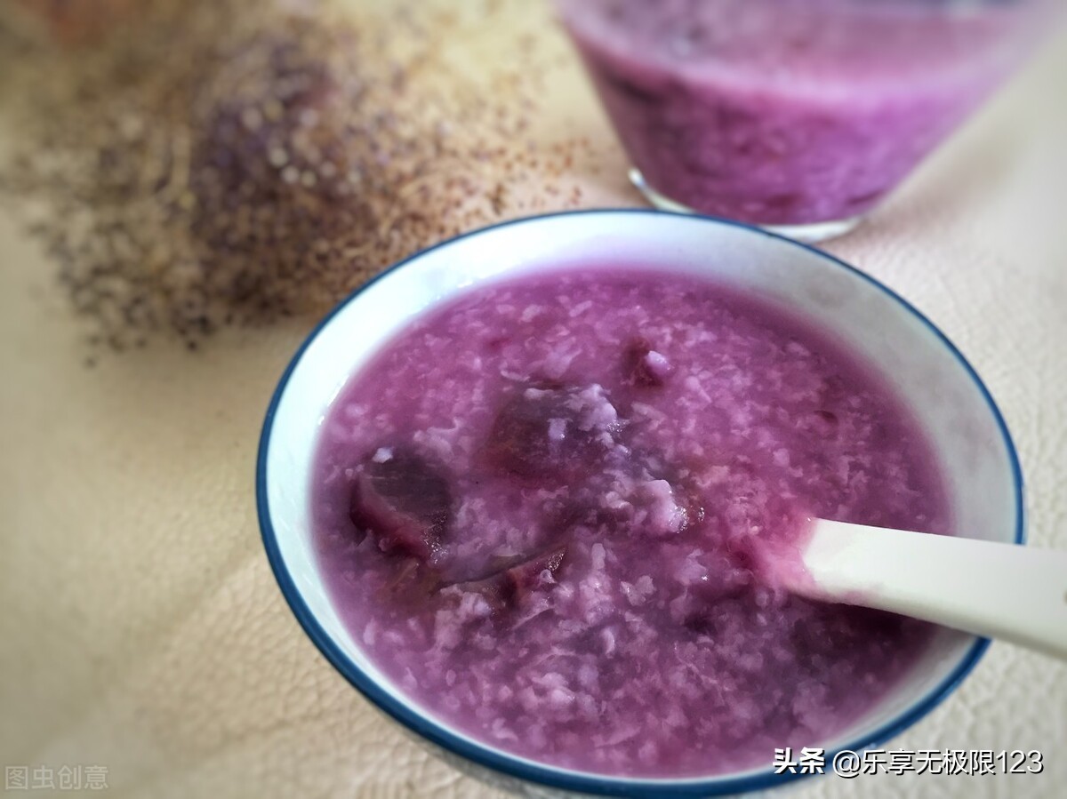 3、米粥熬到20分钟时,放入紫薯和山药,最后15分钟出锅即可。