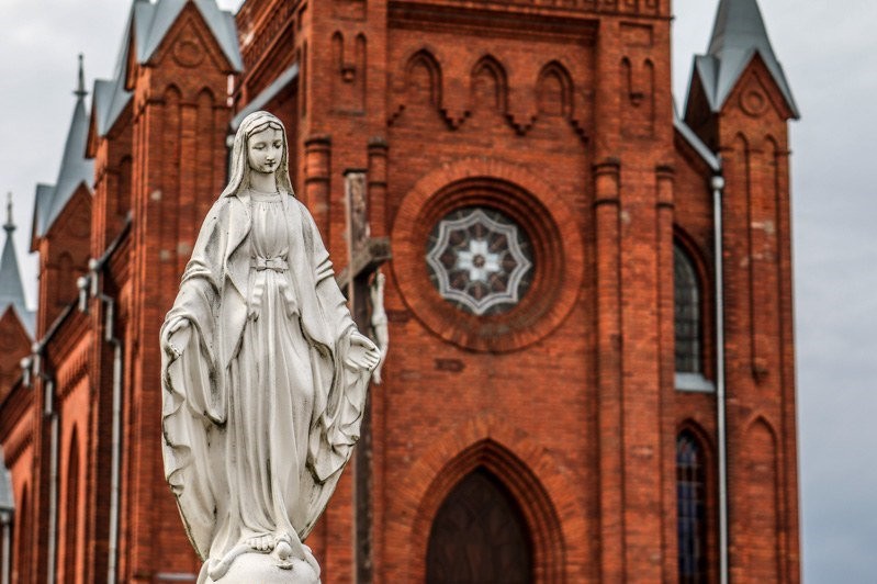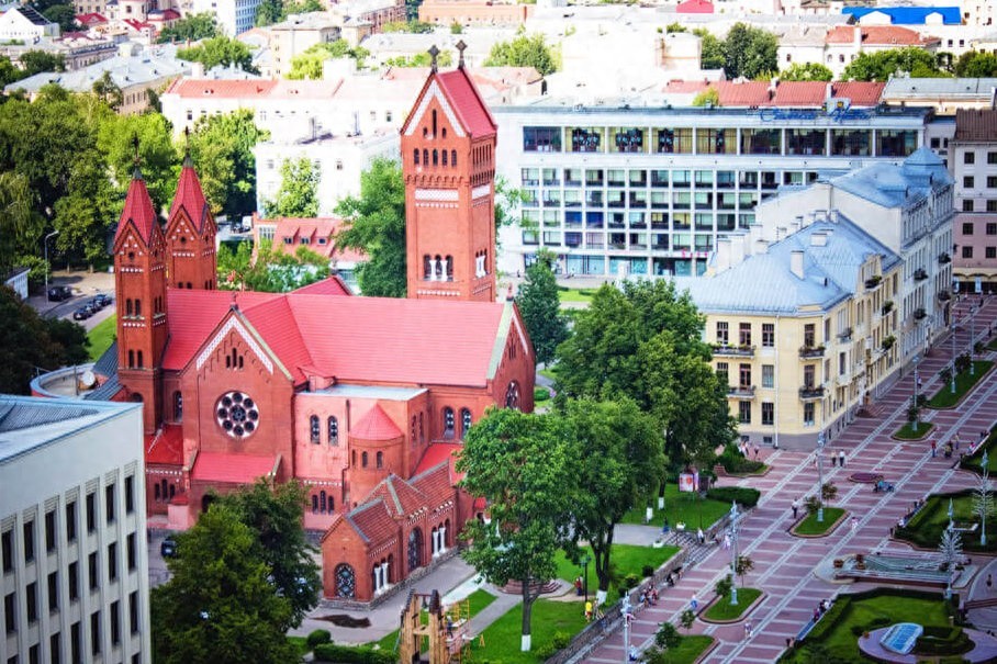 明斯克市最引人注目的天主教堂是建于1905-1910年的圣西蒙和海伦娜教堂。教堂全部用红色的砖建成。明斯克居民习惯称呼它为红教堂。这座教堂是由爱德华·瓦伊尼洛维奇和妻子奥琳皮娅自费建造的,为了纪念他们早逝的2个孩子西蒙和海伦娜。