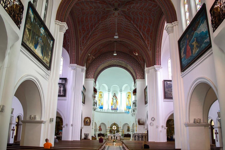 这座教堂是俄罗斯帝国土地上罗马式风格教堂的罕见范例。它由知名的杰出的建筑设计师托马什·波伊兹杰尔斯基设计,教堂可容纳1500人。