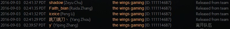 根据V社官方战队统计动态显示,TI6冠军Wings战队在9月3日突然也加入了“离队浪潮”,其队内五名首发队员全部显示离队,让圈内一片懵比。