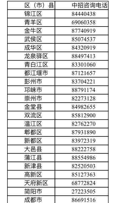 2.龙泉驿区、青白江区、双流区、温江区、郫都区、新都区6个招生区域的录取由当地组织实施,其中普通高中指标到校生由成都市招考办组织实施。