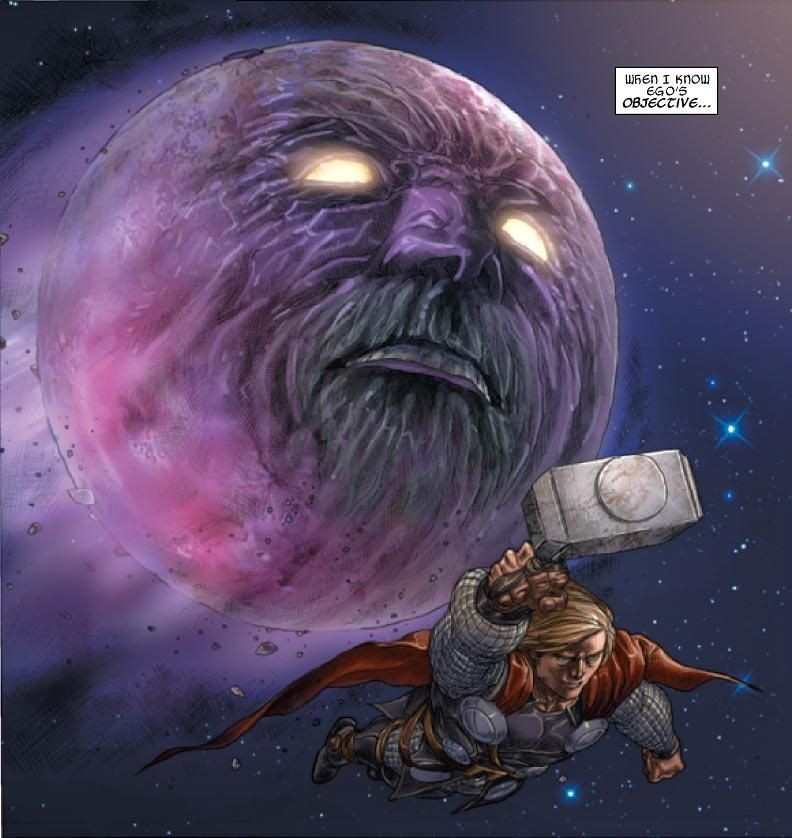 当令人畏惧的Ego现身于黑色星系,并吞噬了他们邻近的星球,参宿七星人一支拥有先进科技的太空殖民种族)企图殖民地球,受到索尔所阻扰,在解释了他们的困境后,索尔旅行进入黑色星系与Ego会面,Ego著迷于见到它的空间之外的生命,并与索尔展开战斗,通过它的创造物〝抗体 (anti-body) 〞来测试自身反抗他人的力量。Ego打算派遣它的抗体去征服其他世界,但索尔召唤他父亲奥丁的力量并且产生一股强大的风暴震惊了Ego,迫使它向索尔投降,誓言不再离开黑色星系。