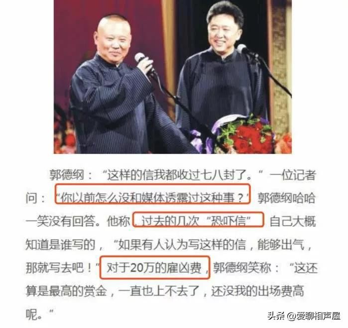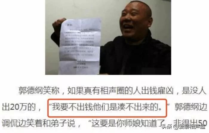 郭德纲回答,身正不怕影子斜,还说自己不害怕,因为相声界拿不出这二十万雇凶费。