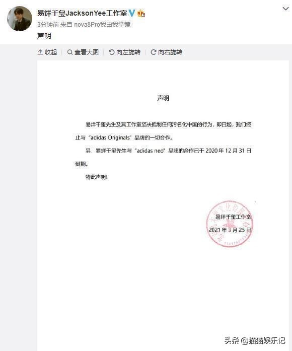 之前闹得沸沸扬扬的新疆棉事件中,易烊千玺也是第一时间跟耐克解约,表达了自己的爱国之情。