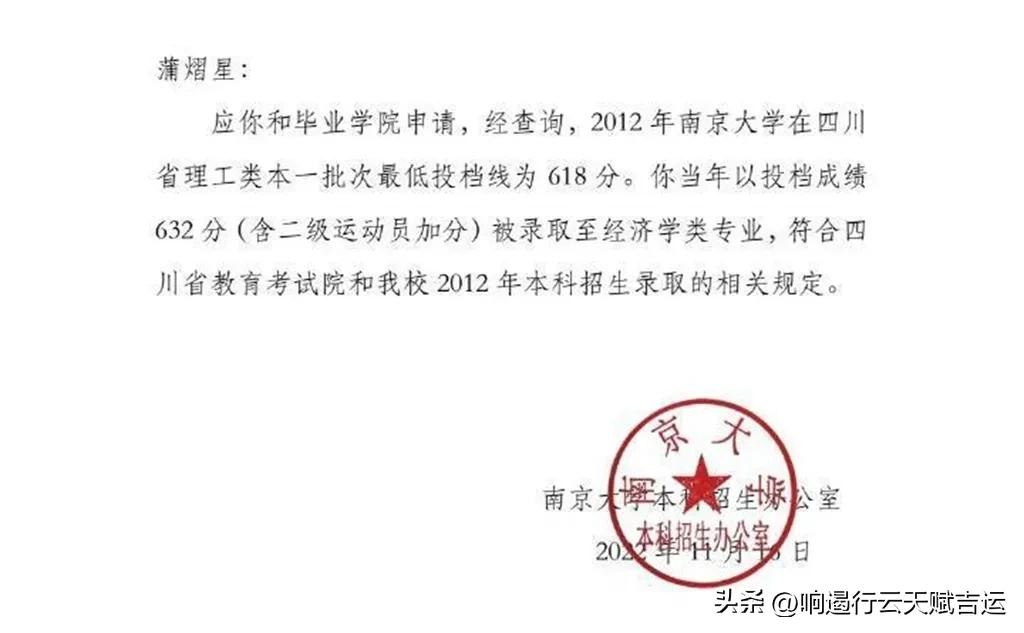 蒲熠星高考612被质疑,南大官方开证明!凭本事加分合理录取