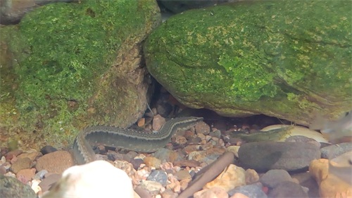 人工水塘的池壁缝隙也是它们喜爱的住所,只要趴在河岸边仔细观察没在水里的池壁,就能看到刺鳅那尖尖的小脑袋正探出洞口张望。这家伙虽是凶猛的捕鱼能手,但更多时候都低调地藏在石缝里伺机而动。