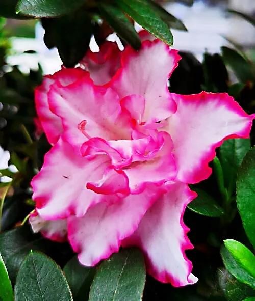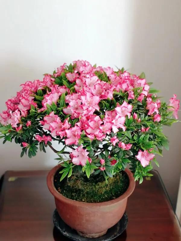 西洋杜鹃是人工培育品种,专为观赏盆栽而生。品种繁多、花型各异,有重瓣、半重瓣等。 花色绚丽多彩:有单色、复色、镶边、点红等,姹紫嫣红,分外妖娆。且四季常绿,终年有花,很有观赏价值。