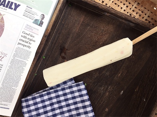 而且切的时候,也可以直接握住筷子的部分固定,再来切山药。整个过程非常方便又实用。这个小技巧管用。如果是很细的铁棍山药,没办法插入进去,那就看接下来两种方法哦。
