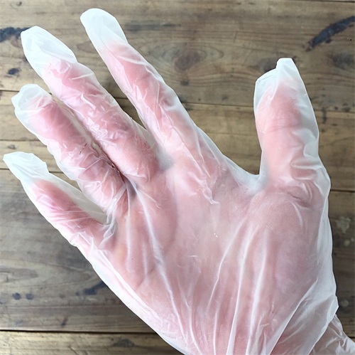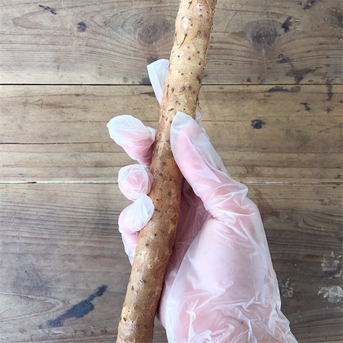 还有一种最简单的方法,就是给手部做安全防护,像我这样带上手套,然后再来给山药削皮,大家是不是经常用这样方法呀。