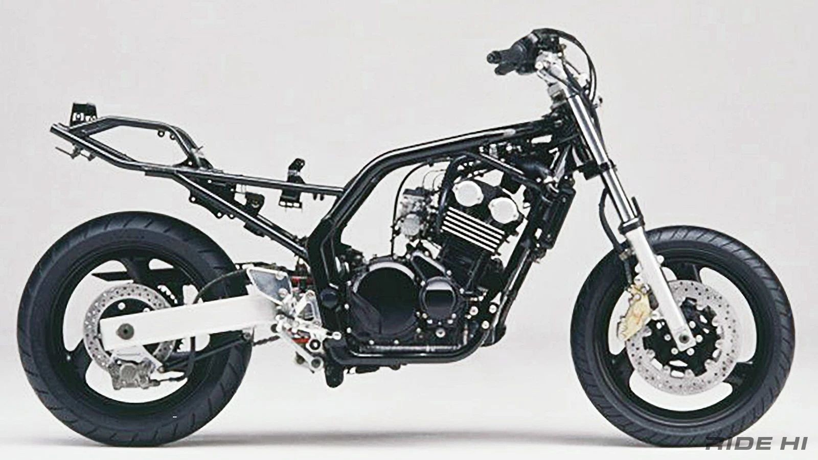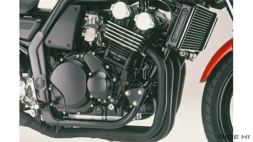 该发动机为水冷DOHC,每缸 4 个气门。气缸的前倾角度假定了直立骑行位置的可操作性,这与复刻版鼎盛时期的 80 年代不同,但两个凸轮轴在头部周围紧密结合在一起,这是自 Genesis 以来的第一次,当时阀门夹紧角度突然变窄,紧凑性也是一种设计。其排量为399cc缸径56mm,行程40.5mm(FZS600为599cc,缸径62mm,行程49.6mm),性能分别为53PS/11,500rpm和3.8kgm/9,500rpm。车架采用宽阔的双支架布局,干重为 177 公斤。最引人注目的是,前制动器配备了Brembo卡钳,这是从当时的雅马哈XJR系列继承的豪华规格。