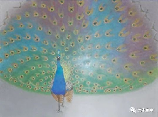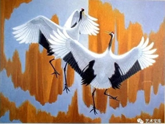 水粉画《韵》是1972年中日建交时,田中首相赠送给周恩来总理的礼品。画面深色的背景前,明快艳丽的白孔雀正在开屏,意味深长,象征吉祥如意的好兆头,祝愿两国关系前途光明。