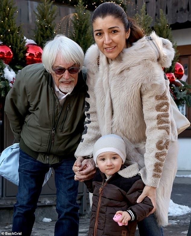 当地时间12月23日,被誉为F1巨擘的英国商人伯尼·埃克莱斯顿,现身瑞士阿尔卑斯山上的奥尔登酒店外,在建于17世纪的建筑物前,和他的44岁妻子法比安娜·佛洛西以及1岁的儿子艾斯,拍摄了全家福。现年91岁的伯尼似乎是为了配合儿子,把腰哈得很低,脸上却也带着很是灿烂的笑容。1岁半的小男孩看上去很是可爱,圆圆的眼睛又黑又亮。据悉一家人将到酒店中吃午餐,并庆祝圣诞节的到来。