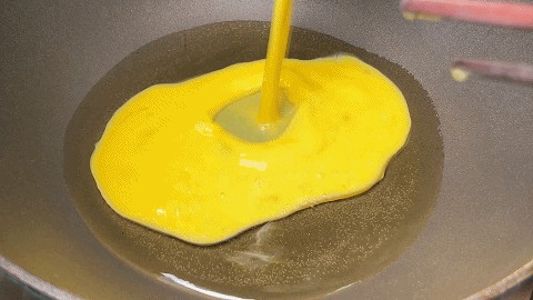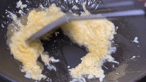5. 起锅加入植物油,将蛋液炒成鸡蛋碎