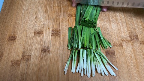 1. 韭菜一把,择洗干净,切成长段,放在盘中备用