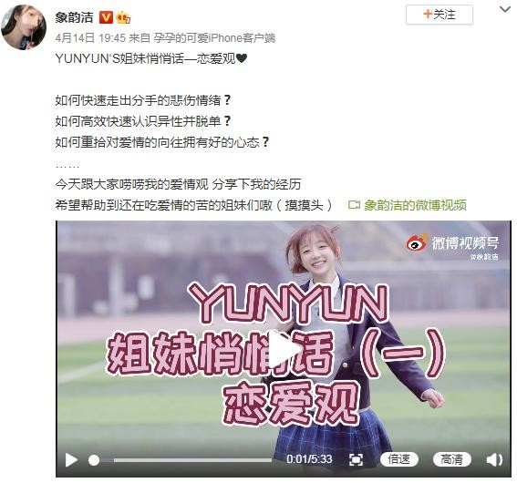 吴亦凡绯闻女友2号象韵洁回应绯闻,曾谈如何走出分手的悲伤情绪