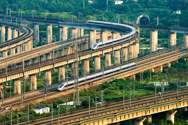 - 成熟建设阶段(2003年-至今):2003年,中国高速铁路确立“市场换技术”基本思路,通过与外国企业合作建设发展中国高铁技术。2007年,中国首条高速铁路——京沪高铁开通运营,标志着中国高铁正式进入商业运营阶段。随后,中国高铁建设迅猛发展,以数量庞大、建设速度快、运营里程长著称,成为世界上高铁建设最为活跃的国家之一。截至2023年2月,中国高铁突破4万公里,里程已经位居世界第一,并且不断向周边地区和国际市场输出高铁技术和运营模式。展现未来,中国高铁将继续领跑世界,