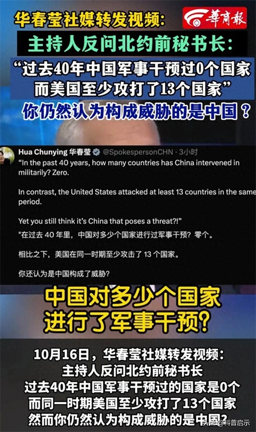10月16日华春莹转发外媒记者采访前北约秘书长视频引发热议: