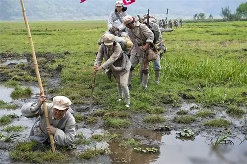 红军士兵们在草地上的行进非常缓慢和艰难。他们必须分散行走,以减轻对地面的压力,避免引发更多的沼泽塌陷。这种分散行走的方式虽然在一定程度上减少了陷入沼泽的风险,但同时也增加了士兵们相互救援的难度。有时候,一名士兵陷入沼泽,其他同伴为了避免同样的命运,不得不绕行一段较远的距离才能进行救援。