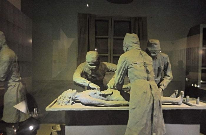 他们甚至把刚出生的婴儿泡进福尔马林,做成标本。他们还进行非人道的人体实验——将一对母子关进灼热的铁皮房间,只为观察母亲在极端环境下究竟是会用身体护住孩子,还是会为了减轻自己的痛苦将孩子垫在脚下。
