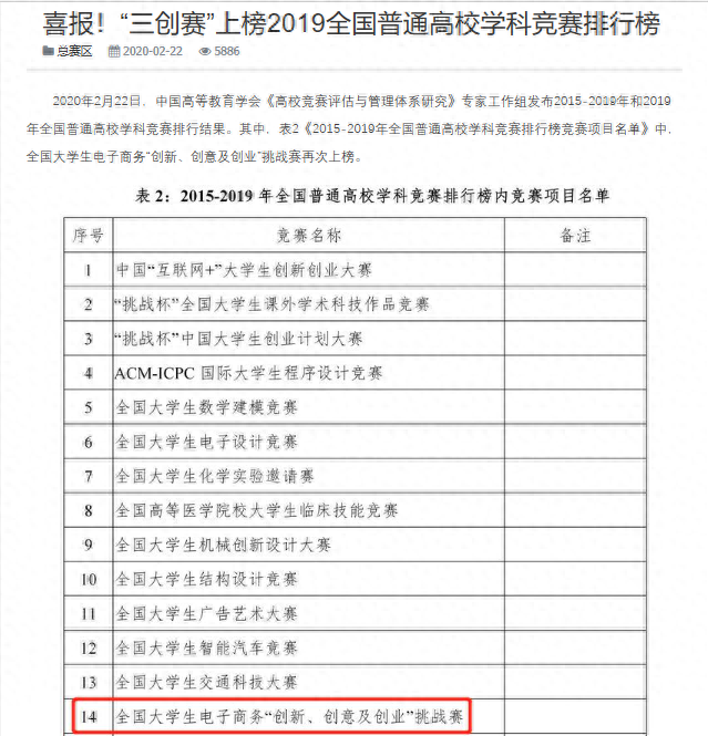 该项大赛在2015-2019年全国普通高校学科竞赛排行榜