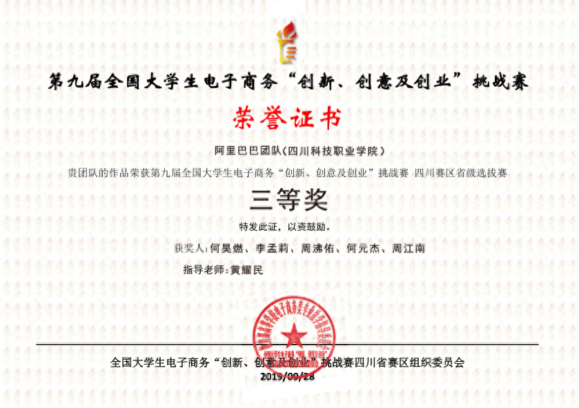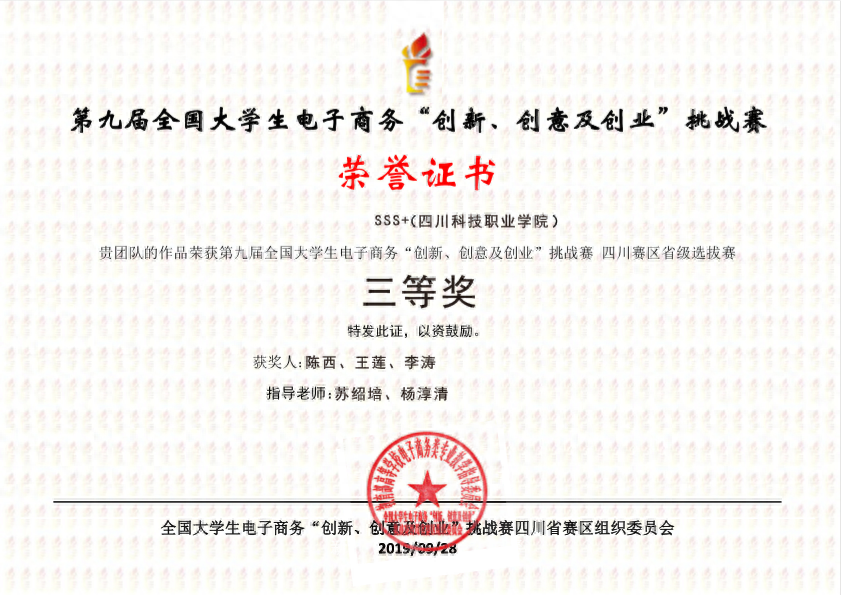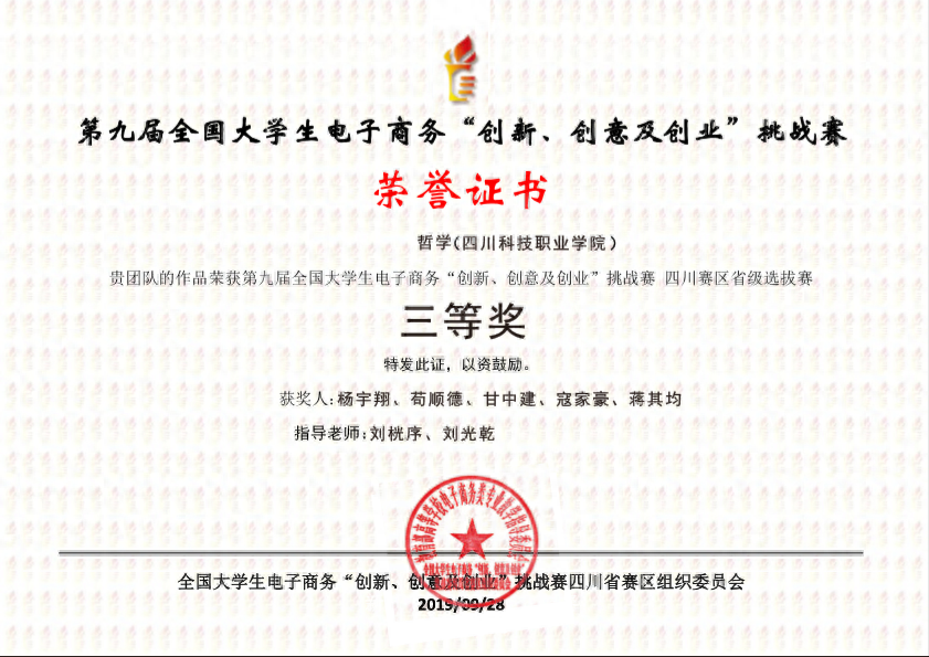 校赛、省级赛、国赛获奖证书仅以“三创赛”官网信息为准。