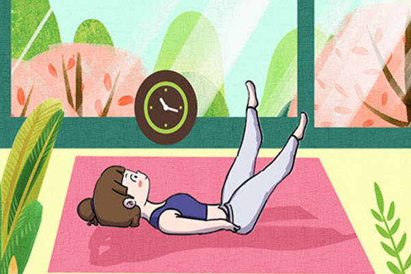 常见锻炼腹肌的动作有仰卧起坐、卷腹运动、仰卧摆腿等方法。仰卧起坐运动需要利用腹部力量将上半身抬起至45°。卷腹运动需要保持双腿向上直立,利用腹部力量提臀保持2秒。仰卧摆腿需要双腿交叉小幅度上下摆动30秒。