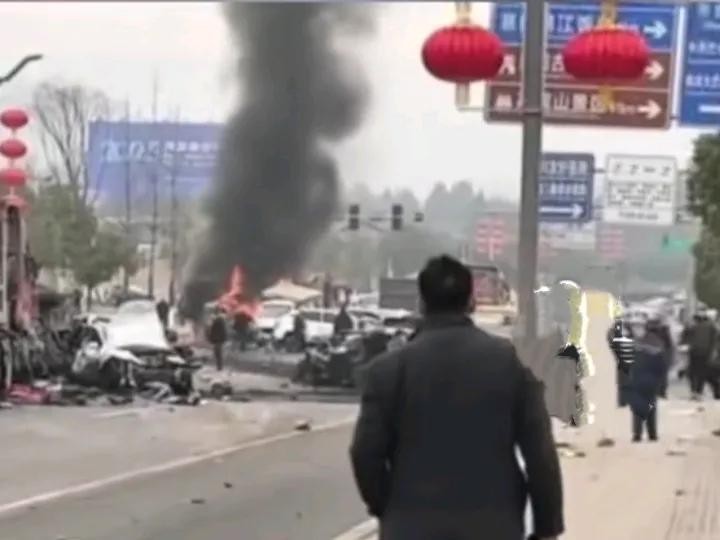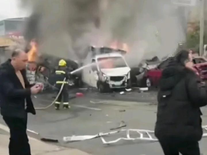 事发路段正值车流高峰,车辆行驶缓慢。一辆满载货物的大货车从后方快速接近,疑似失控,猛烈撞向前方车辆。监控视频显示,大桥上的车辆被撞得东倒西歪,有的汽车变形起火,现场火光四溅,烟雾弥漫。