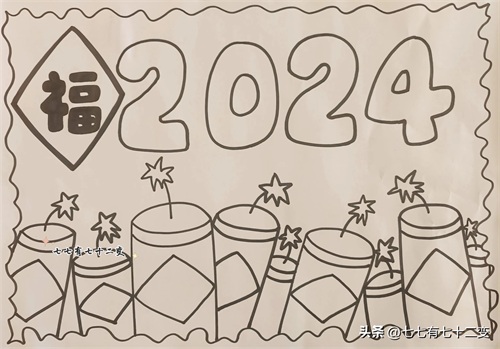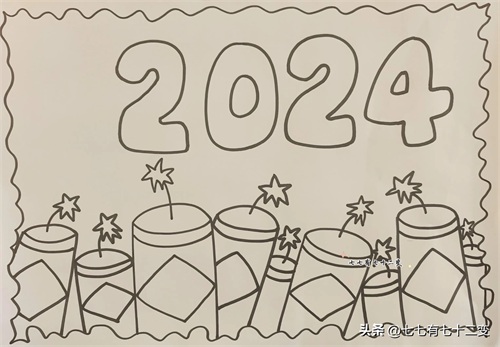 新年主题画,新年快到了,分享一幅2024新年主题儿童画,简单易学