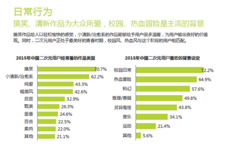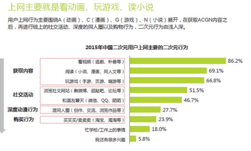 以上主要是互联网数据分析网站,对二次元人群特点的调查分析,他们活跃于互联网,具有极强的传播能力,且忠诚度高,具备很强的付费能力。这样分析二次元人群或许有些冷冰冰,亦或会遭到他们的吐槽,毕竟二次元是他们内心美好的世界,也是一种情怀。