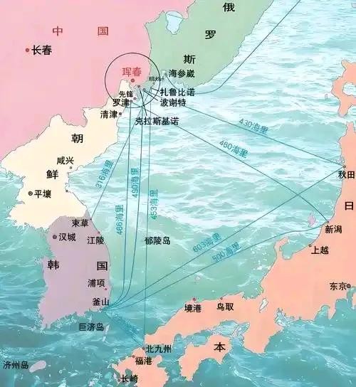 防川与新泻480海里,新泻与东京270公里。也就是说,防川与日本东京的直线距离仅1100公里左右。