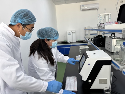 石楼镇现代农业产业园区工作人员正在进行农残检测。