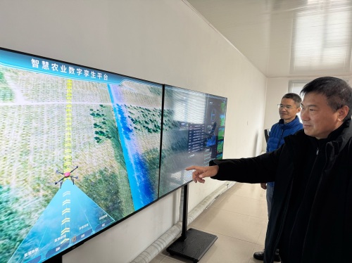 石楼镇现代农业产业园工作人员正在展示智慧农业数字孪生平台。