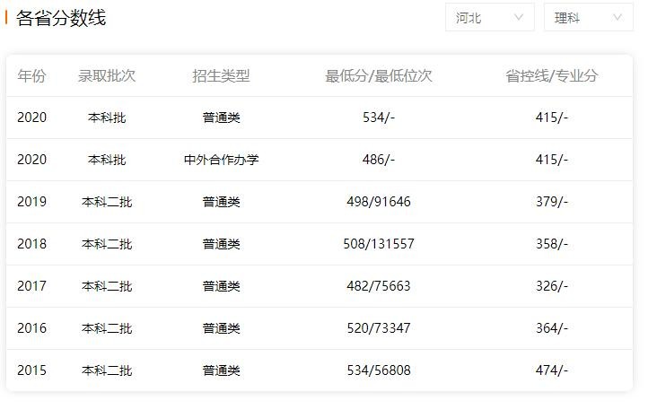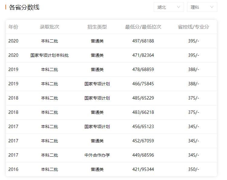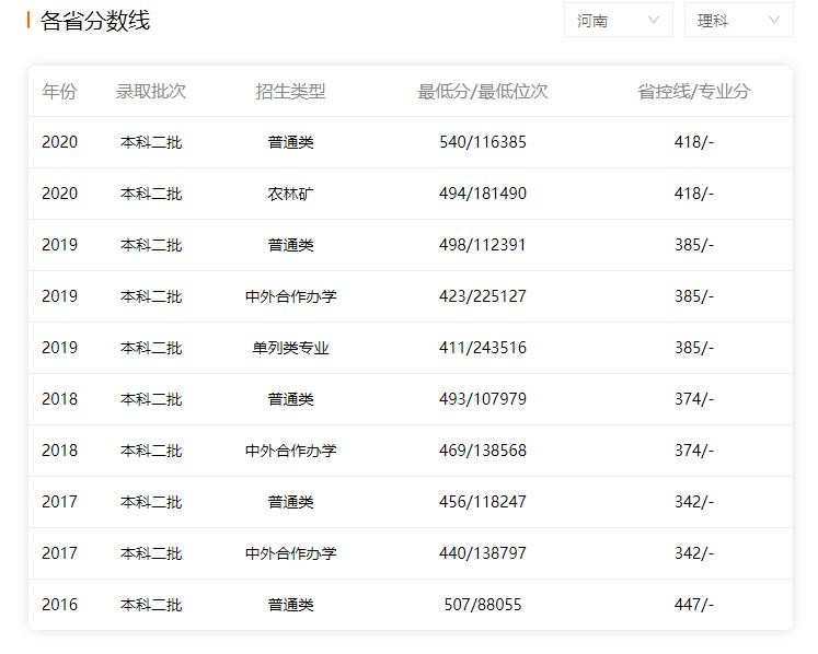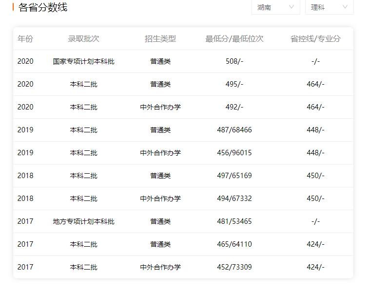 以下是部分省份历年录取分数: