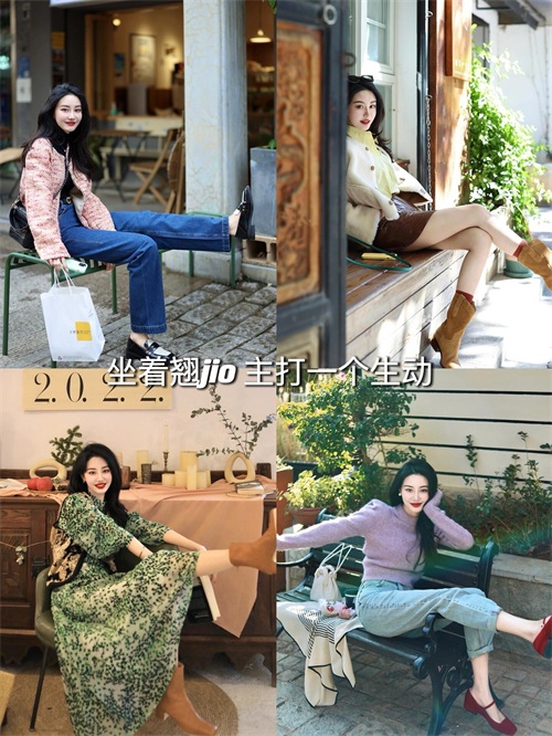 在街边或者步行街等地方,可以尝试侧身坐在路边的台阶或椅子上,一只脚轻轻翘起,手托下巴。这样的姿势既能展现出悠闲自在的感觉,又能让照片显得非常有生活气息。尤其是在街景、建筑作为背景时,更能突出照片的层次感和氛围感。