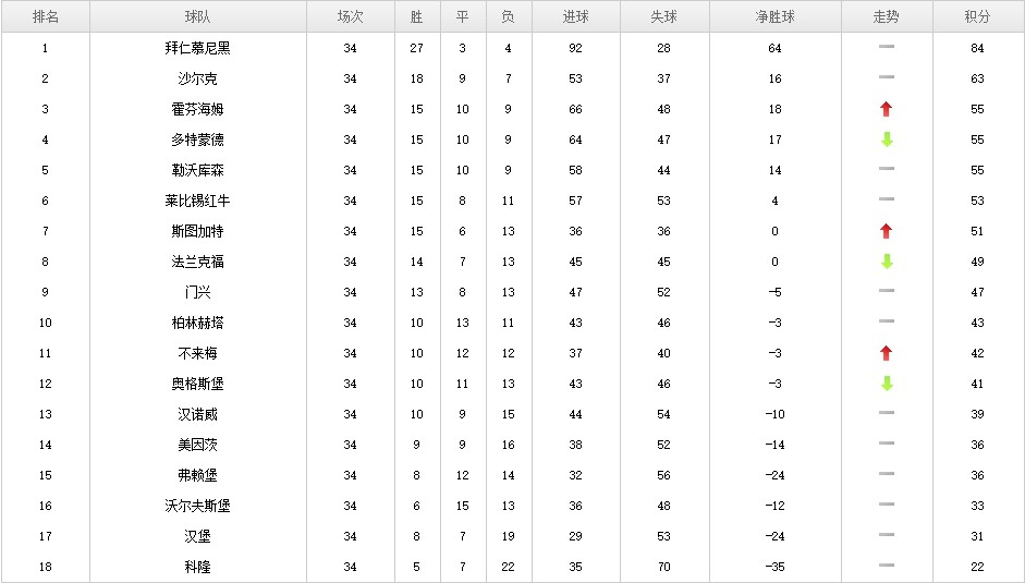 欧冠资格:拜仁慕尼黑、沙尔克、霍芬海姆、多特蒙德(全部进入正赛)