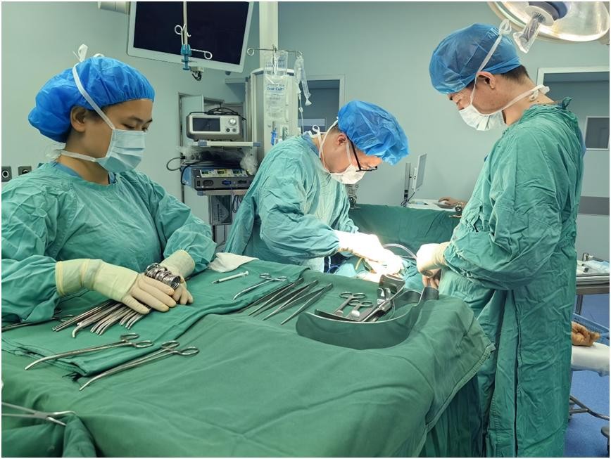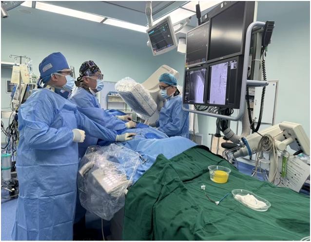 春节期间,血管外科团队时刻处于待命状态,接到急诊通知后迅速启动急救流程。血管外科郭明金主任及其团队第一时间对患者病情进行详细评估,结合患者多种基础疾病及突发主动脉夹层的复杂情况,制定了紧急手术方案。为了在最短时间内降低患者的死亡风险,决定在局部麻醉下实施急诊手术。