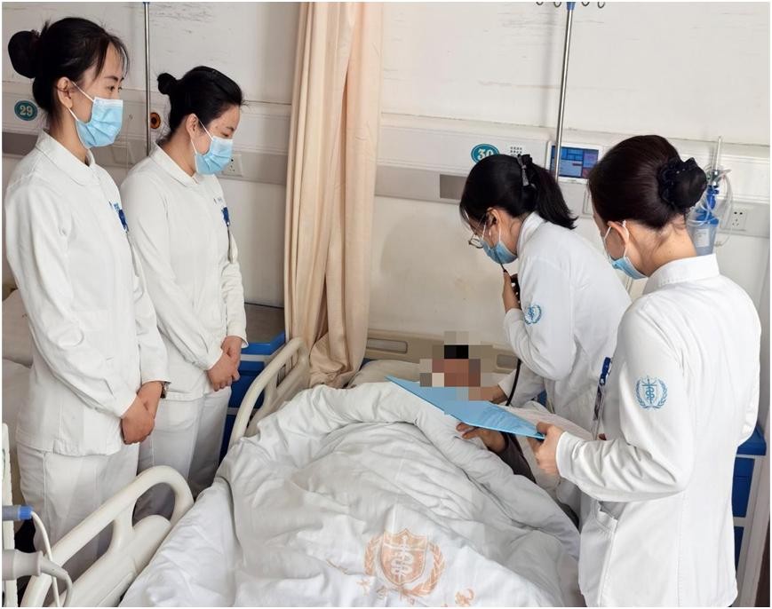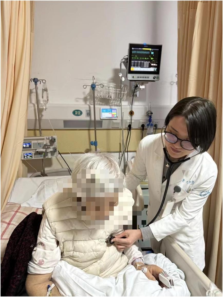 除夕夜晚8点,一名冠心病、心衰、肾功能不全、长期透析、阵发性房颤合并肺部感染的患者突发呼吸困难、端坐呼吸,李培慧迅速赶到病床旁进行检查,心电监护提示患者血压180/110mmHg,心率100次/分,呼吸30次/分,双肺大量湿啰音,主管护师姜欣为患者进行心电图检查、抽血化验,诊断为急性心力衰竭发作。经过吸氧、扩血管、强心等一些系列治疗,患者呼吸困难缓解。