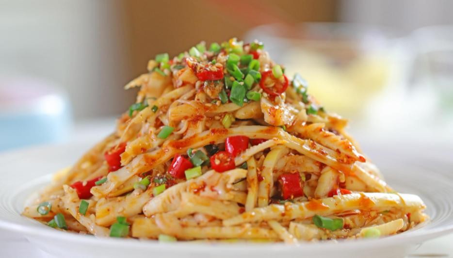 11. 享用: 香辣炒春笋现在已经可以享用了!这是一道香辣开胃,令人垂涎的川菜小炒,适合辛辣风味的爱好者。
