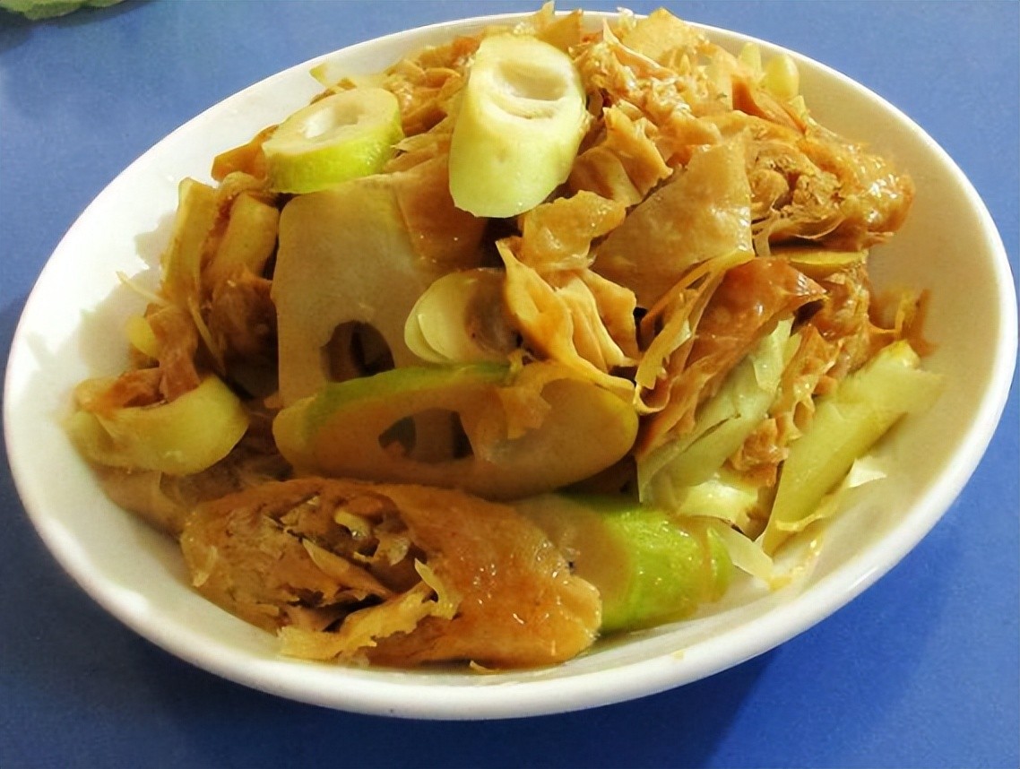 (1) 将春笋去皮,切成小段,莲子去莲心,备用。
