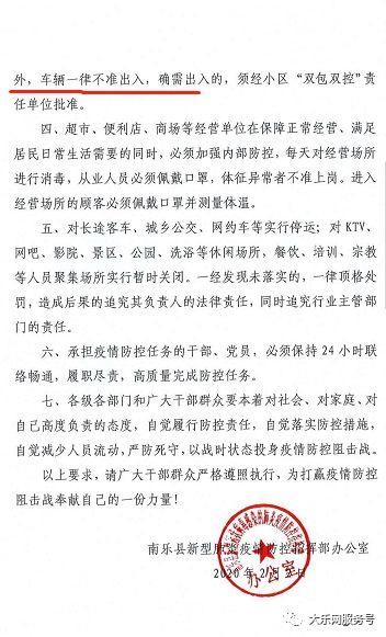 关于南乐县全面管控人员流动的通告自2020年2月3日零时起严控县外车辆和人员进入县境
