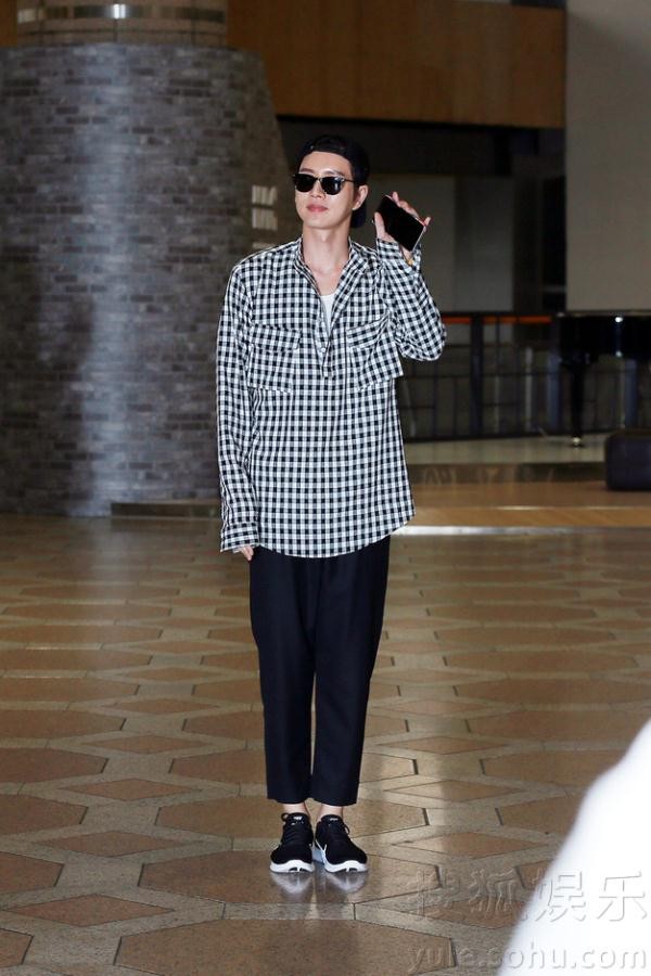 朴海镇机场上演潮男秀 有求必应亲和力十足