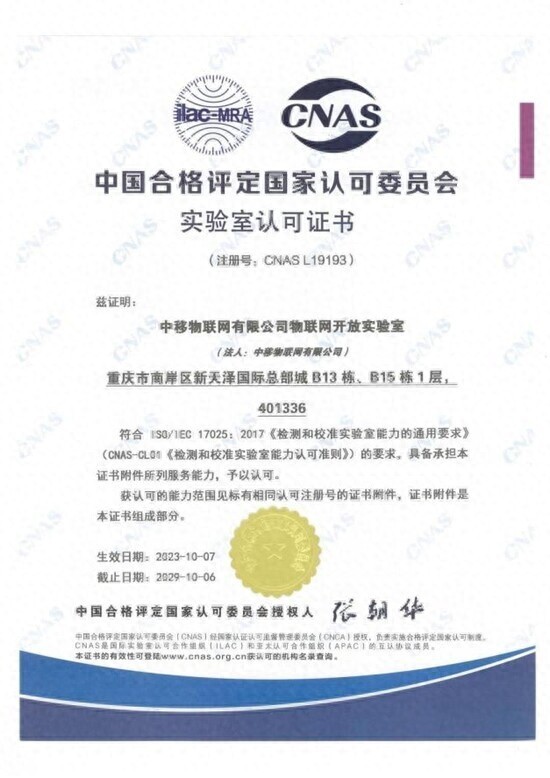中移物联网有限公司物联网开放实验室获软件检测领域CNAS认证