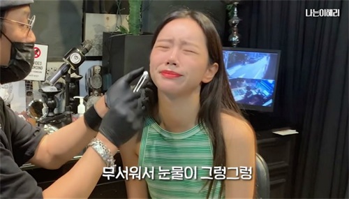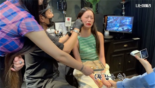 李惠利终于开始意识到要进行打耳洞的过程后,她真的开始哭了起来,那我见犹怜的样子真的令人很心疼。