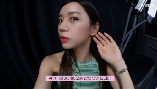 李惠利通过自己的YouTube频道个人账号“惠利”,公开了自己首次打耳洞样子的视频。