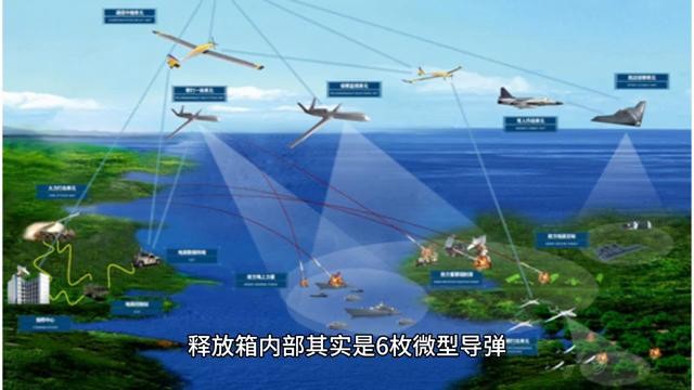 ·在对地察打展示中,"云影"无人机首先展出的不是导弹,而是犹如空中"天女散花"的释放箱。释放箱内部其实是6枚微型导弹,它们重约1.2千克,拥有2千米左右的射程,可以根据无人机侦察到的目标信息进行自主选择打击。